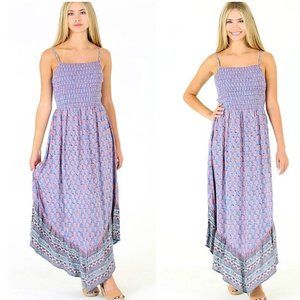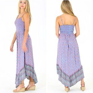 Periwinkle Floral Smocked Angled Boho Maxi Dress