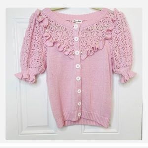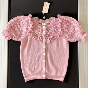 NEW WITH TAGS! π· Absolutely stunning sweet pointelle knit cardigan embellished with precious pearls, girlish frills and adorable white buttons! Size βSβ (4/6). This style is sold out worldwide so grab the LAST ONE AVAILABLE! ππ