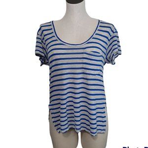 Madewell Blue Gray Striped Scoop Neck Pocket Tee Shirt