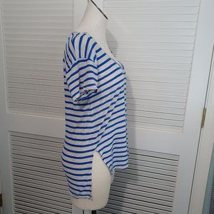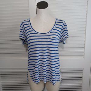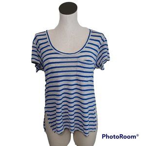 Madewell Blue Striped Scoop Neck Pocket Tee Shirt