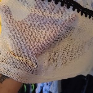 This is STUNNING new with out tags, knit tunic that has beautiful lace detailing! This is an off white color, not quite beige, not quite white. The black lace details add some up-graded classy styling abilities. This is marked a Large size. I think it may be Juniors Large because it does run small.