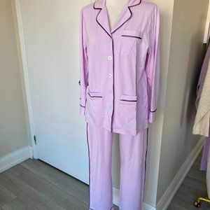 - 100% Mulberry silk - Size S - Silky ivory piping See product pricing here: https://sleepinkip.com/collections/spring-sale/products/silk-wide-leg-trouser