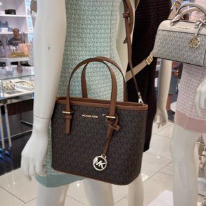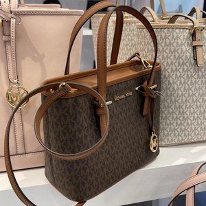 Michael Kors Jet Set Travel XS Carryall Tote Top Zip Tote Brown