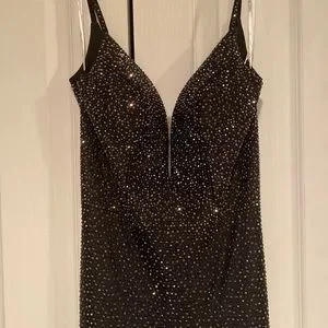 This dress is BRAND NEW! I was never able to wear it to prom due to covid. It has only be tried on. It is a size 4 and has not had any alterations. It is by Ellie Wilde and the storage bag will be included! If you need any measurements/more pictures/have any questions please let me know. I am open to offers as well!! :) It also comes with extra rhinestones.