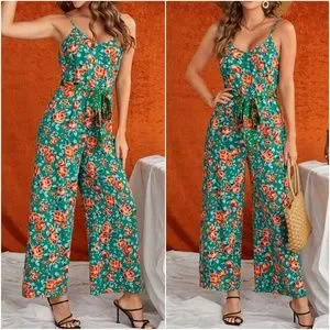 Boho Floral print Wide leg Belted Jumper Jumpsuit