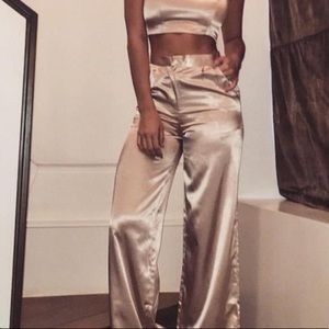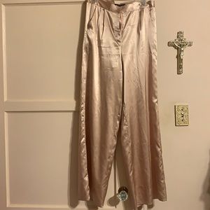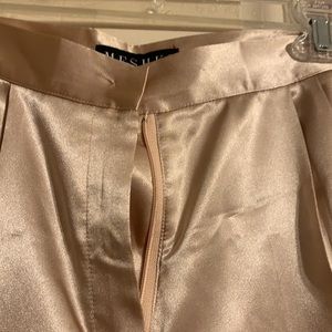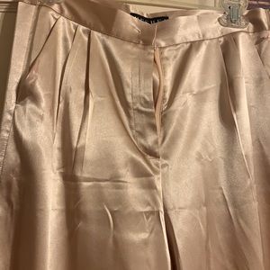 MESHKI ROSE PINK GOLD SATIN SATEEN WIDE LEG PANTS TROUSERS CHAMPAGNE MED BARBIE