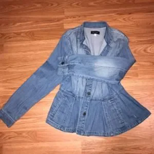 Halogen peplum style denim jacket. Soft, distressed. Logo buttons, front pockets. Super cute. 😍