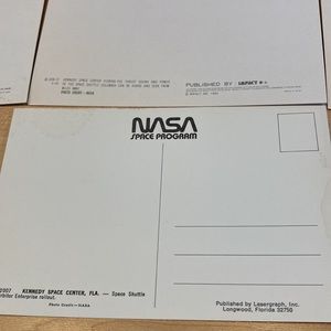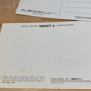 10 vintage JFK space center,Fl postcards. All but 2 of them are dated 1982 and are mostly of the space shuttle Columbia, please refer to my pictures. My husband had them as part of his collection of NASA memorabilia. I have also included as a bonus a 3D notebook I found that I think is really cool. If you have any questions please feel free to ask!