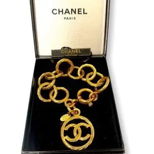 CONDITION: This Chanel Vintage Gold Chainlink CC Logo Bracelet is in Immaculate Condition! Brand New & Flawless, it has never been worn. Comes with Original 1993 Hang Tag & Original Box.