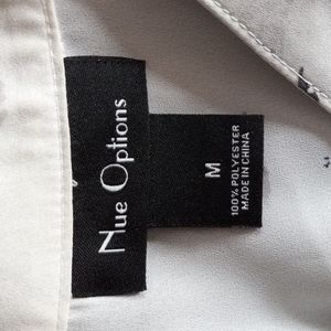 Nue Options White V-Neck Pleated Blouse With Bird Print *MED*