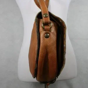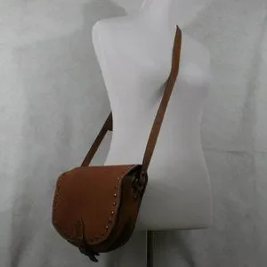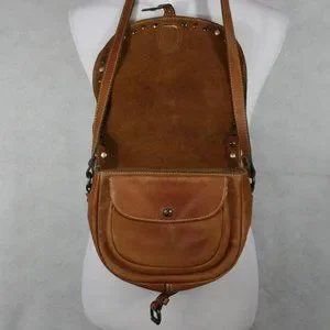 Patricia Nash Brown Italian Pebble Leather Crossbody Saddle Bag w/ Rivets VGC