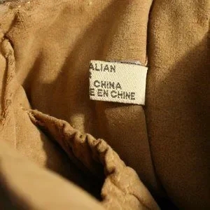 Two small interior slot pockets...one large side zip pocket...brushed metal hardware