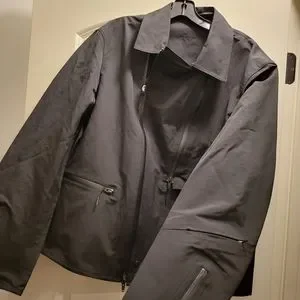 Long sleeve cotton-blend broadcloth jacket in black. Supplier color: Black Body: 57% cotton, 43% polyester. Trim: 100% polyester. Sold out on ssense for $600 grab this amazing tech wear jacket for almost nothing here. Offers considered but this jacket is too crazy to give away.