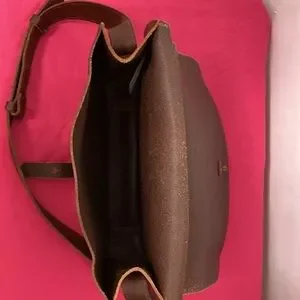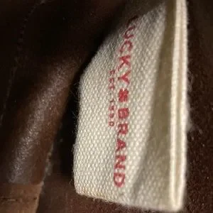This All Leather Lucky Brand Shoulder Bag is Lovely and Very durable and Approximate Measurement’s strap drop 21” & Adjustable, Length 7.5”, Width 3” it also has stud closure on front flap and on shoulder strap. It has one wide pocket on the back gently used with a couple scuff marks please see pics above