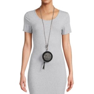 WITH A CHAIN STRAP OR BLACK STRAP THAT YOU CAN INTERCHANGE