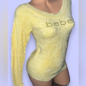 Bebe Swarovski long sleeve baby fur top crystals yellow y2k rare fuzzy sweater