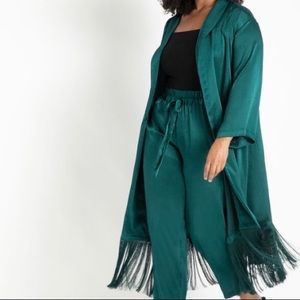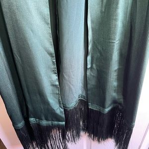 Satin like kimono, fringe around bottom hem, open front, brand new, never worn