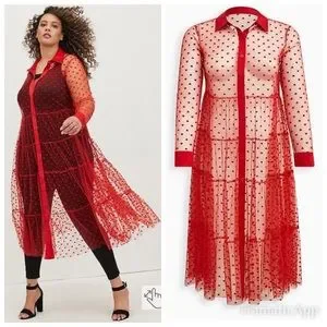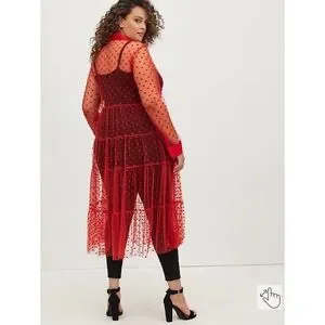 NWT TORRID Kimono - Button Front Mesh Red Hearts