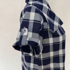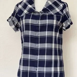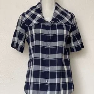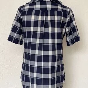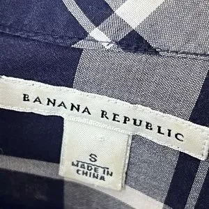UNIQUE! Banana Republic Short Sleeved Blue Plaid Cotton Button Up Shirt