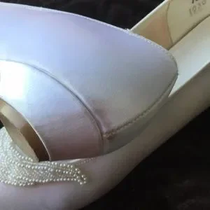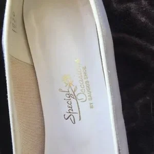 Vtg Special Occasions By Saugus Shoe White Satin with beads Sz. 10 1/2, heel 1”. The shoes were worn only on my wedding day, they are a little dirty, I see the pictures, These shoes are very rare and can be prefects for work or special event, they are decorated with handmade beads in the front.