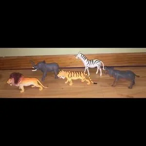 Lot of 5, Toy Major Co, hard plastic, non posable, realistic Jungle Animal Set, figures all marked WM84495 made in China, measure approximately 3in -5in tall & 5 1/2 - 6 1/2in long, minor color loss & marks from prior use, please see pictures, smoke free home