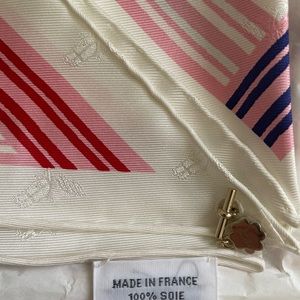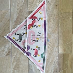 Multi white silk twill triangle scarf 70cm NIB PRISTINE. Sold out everywhere! Charm still has plastic cover.