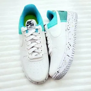 New With Box, No Box Lid, 100% Authentic, Firm Price! Part of Nike’s Move to Zero Initiative, these sneakers feature upper material and foam cushioning made from recycled materials and Nike Grind rubber accents. Iconic low profile AF1 silhouette has a sleek, clean look. Upper features stitched synthetic leather overlays for added support. The classic Nike Air Force 1 gets an eco-friendly makeover. Slip into the Women's Nike Air Force 1 Crater Casual Shoes for a sneaker that looks as good as it feels. Crafted with recycled materials and manufacturing processes that create less waste, these sneakers level up your favorite silhouette. Color: White/Dynamic Turquoise/Armory Navy/White. Women's Size 6