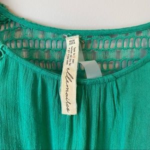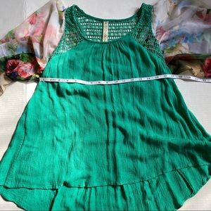 Ellemairco women’s boho bespoke flowy high low green floral crochet blouse - Med