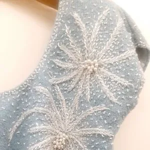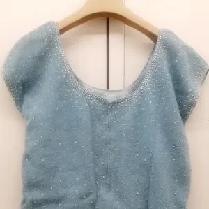 Vintage 1950's/60's BLUE WOOL KNIT Pearl Beaded Sweater Blouse Top
