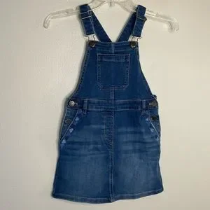Crewcuts girls overall dress denim heart embroidered
