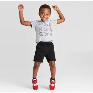 Jack™ Black. Size 12 months. Whether he's hanging out at home or enjoying a day at the park, these Knit Pull-On Shorts from Cat & Jack™ make a versatile option in your little boy's closet. The full waistband elastic with a flexible drawstring offers him a snug fit while making it easier for you to get him dressed. Made from a breathable fabric with a soft knitted design for comfy, all-day wear, these black knitted pull-on shorts pair perfectly with any style of tops in his closet for lots of easy styling opportunities. Have him pair these with a cool graphic tee and slip-on sneakers for an adorable look.