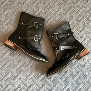 These don’t have a brand on them. In great used condition. Barely worn. Fit like a size 8. Zip up side. Clean. Please see photos for any marks.