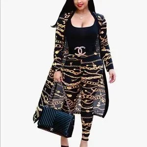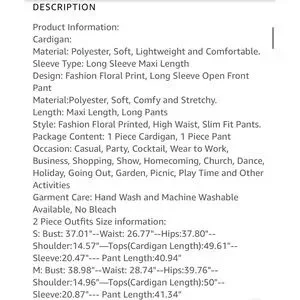 New In Bag 2pc Outfit Floral Long Sleeve Open Front Cardigan Cover Up with Leggings High Waist Long Pants Set Size:Large