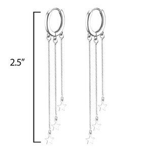 Our boutique collection brings you these stunning star drop hoop earrings in sterling silver.
