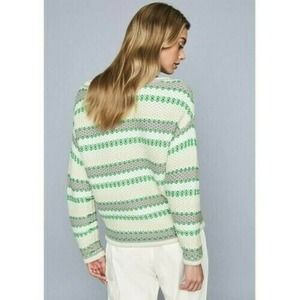 Reiss Anna Pastel Stripe Knit Sweater Pullover In Green & White Sz S
