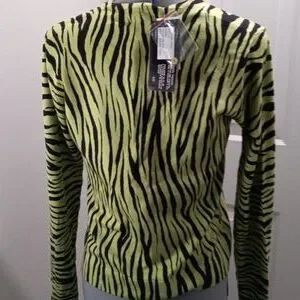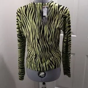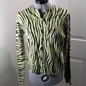 NWT City Silk Sz Small, Silk Lizard Black Sweater, Button Front.