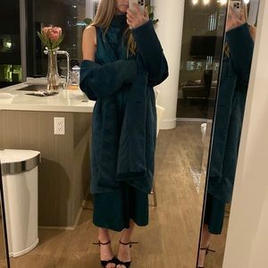 MATCHING SET - emerald green satin jumpsuit and fur coat