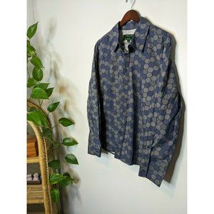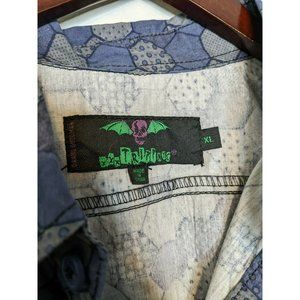 XXX TRIPP NYC Button Down Shirt Mens Blue Honeycomb Size XL Industrial Goth Punk