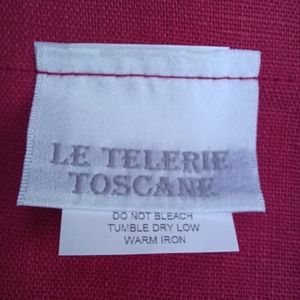 DETAILS: Exclusive Le Telerie Toscano linen tablecloth NWT seats 8-10 in red. One inch trim finish. This shop in Florence is known for highest quality linens and designs.