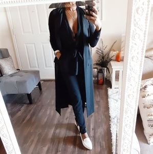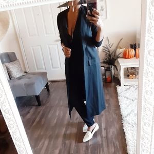Professional sleeveless long blazer in a tailored style. Faux pockets on side. A size 6.