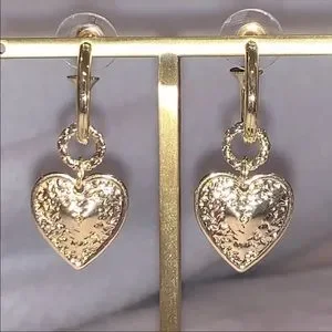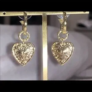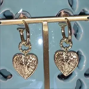 NEW hoop earrings, remove the charm and they become Small Cecilia hoops. Two pairs combined into one. Great Price Retail $90 Stud fastening Hoop top, locket heart pendant, cross centre 14ct and 24ct gold-plated metal Handmade in LA