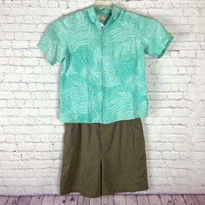 Tasso Elba Island Green Shirt & Zonz Brown Short Men's Bundle. Tasso Elba Island Green Floral Button down Shirt. Size: Medium 55% Silk / 45% Linen. Zonz Drawstring Brown Flat Front Short. Size: Medium. 100% Cotton. Booth in GOOD preowned conditions. Smoke and Pet Free.