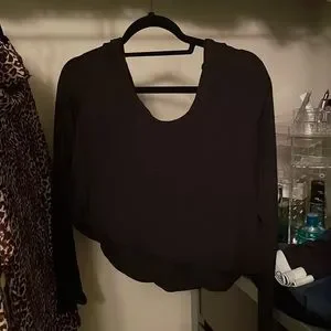 Size Small, cozy and warm + strings and an open back!