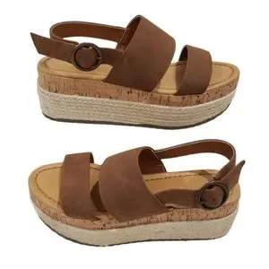 American Eagle Outfitters Double Strap Wedge Cork Espadrilles Platforms Size 6