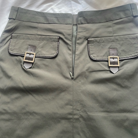 Elegant straight skirt with a slit in the back and hidden zipper closure. Made from 50% cotton, this knee-length skirt is perfect for the office. Features two pockets at the back with buckle closure.