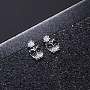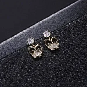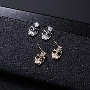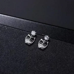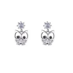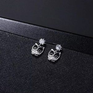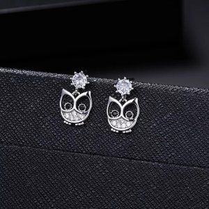 14k Gold Adorable Diamond Owl Earrings Sterling Silver