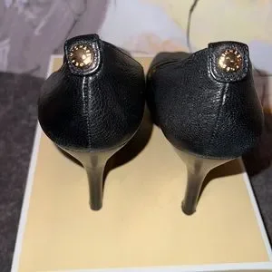 🔥🔥🔥👠MK BLACK LEATHER HEELS USED BUT IN GOOD CONDITION SIZE 9.5 ORIGINAL BOX