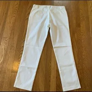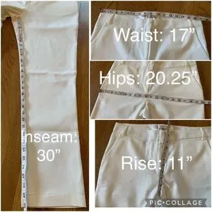 Ovi high waist off white trousers, size L side slant pockets, faux back welt pockets, 55% cotton, 42% polyester, 3% spandex, smoke pets free environment, fast shipping, color may vary by device screen and light. Stock photo only for style purpose. Ankle pants, office pants. Dress it up or down