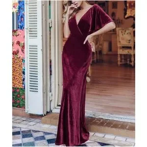 rust Brown Velvet Off Shoulder formal party evening wedding prom Luxe dress