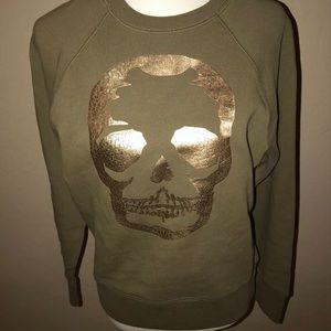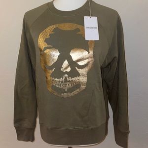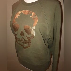 🎉HP🎉 Zadig & Voltaire Upper Skull Gold/Khaki 100% Cotton Sweatshirt Size XS✨